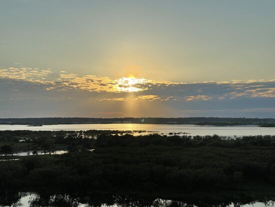 Was für ein Tagesanfang! ich erwache kurz bevor es hell wird und bin völlig überrascht, dass mein Zimmer direkte Aussicht zum Sonnenaufgang hat. Soviel zu meinem Orientierungssinn.