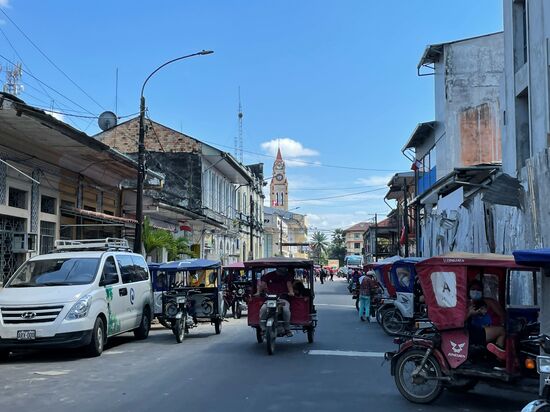 Bevor wir den Laden verlassen, lasse ich noch 20 Seifen einpacken. Für jede Familie eine. Schwer beladen verlassen wir den Laden. Zum Glück gibt es die Mototaxis, die transportieren alles und fahren bis vor die Ladentüre. Ich fahre noch mit bis nach Nanay, von dort fährt Liborio mit dem Boot hinaus zu seinem Stamm. Morgen wird er mich hier erwarten.