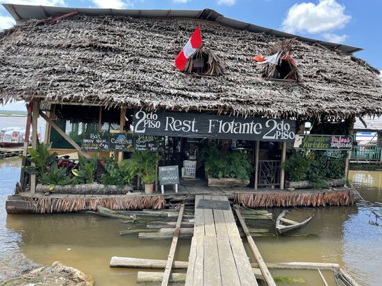 Ich kehre im schwimmenden Restaurant in Nanay ein. Lange war es einer meiner Lieblingsorte um ein wenig abzuhängen, auf den Fluss zu sehen. Dann war das Flossrestaurant plötzlich verschwunden, verlottert, abgefrackt und jetzt wurde ein neues aufgebaut. Ich sitze im oberen Stock, leise schwankt das Wasser, wenn eines der stärkeren Boote vorbei fährt und die Wellen das Ufer erreichen.