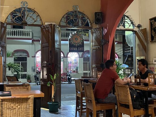 Zum Frühstück gehe ich ins nahe gelegene Dawn on the Amazon am Bulevard. Da gibt es eine grosse Auswahl an verschiedenen Frühstücks. Sogar eines mit Kokosyoghurt und Müesli. Dazu einen richtigen Milchkaffee. Das Dawn on the Amazon gehörte Bill, einem Amerikaner, der sein Herz hier verloren hatte. Mit seiner einheimischen Frau baute er in den letzten 20 Jahren das Restaurant zu einer Institution auf. Vor allem Amerikaner trafen sich jeweils unter dem Sonnendach. Vor ein paar Jahren verunglückte Bill bei einem Gewitter und seither führt Marmelita den Betrieb allein weiter.