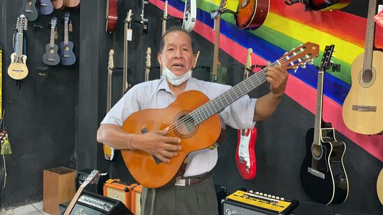 Heute sind neue Gitarren eingetroffen und Pablo kann sich für eine entscheiden. Er freut sich ungemein und verspricht, dass er sie bis zu meiner Rückkehr aus dem Dschungel eingespielt hat.