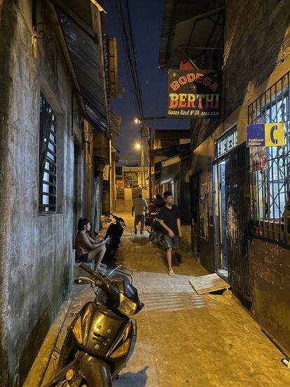 Als er merkt, dass wir nicht reagieren, kommt er uns entgegen, steigt auf der anderen Seite einen hohen Gehsteig hinauf und klopft irgendwo an. "Kundschaft!" Erst nach ein paar Minuten öffnet sich eine Türe, geht ein Licht an und ich kann einen Rezeptionsschalter erkennen. Ein Mann drückt uns einen Schlüssel in die Hand, zeigt uns die Zimmer und dann bin ich allein. Angekommen in Pebas, angekommen in einer anderen Welt, von der ich keine Ahnung habe, was mich da erwartet. Bevor ich die Türe schliesse, hab ich mich noch nach dem Preis für das Zimmer erkundigt und bin gar nicht sicher, ob ich es richtig verstanden habe. 30 Soles für die Nacht.
