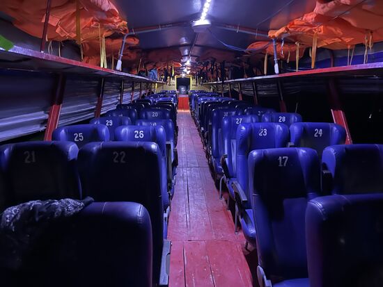 Rosa erwartet uns beim Boot, das schon am Pier liegt. Es ist ein langes Kabinenboot, eine Sardinenbüchse. Drinnen dröhnt Musik, die Sitze sind frei wählbar. Langsam trudeln die Passagiere ein. Die Tickets werden gecheckt, das Gepäck eingeladen. Grössere Stücke landen auf dem Dach, für Rücksacke hat es im vorderen Teil des Bootes Platz.