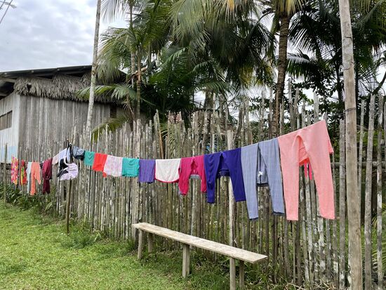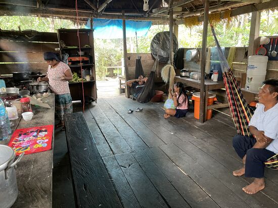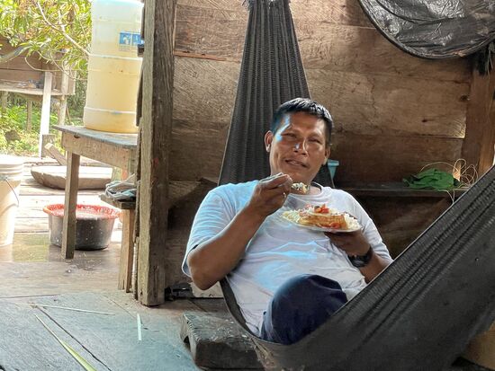 Auf dem Herd steht übrigens immer ein Topf mit Essen. Reis und gekochter Fisch mit einer Sosse aus Zwiebeln und Tomaten. Wer Hunger hat, bedient sich, setzt sich irgendwohin, egal ob an den Tisch, auf den Boden oder in die Hängematte. "Dafür gibt es bei uns keine Regeln", meint Juan, als ich ihm erzähle, dass in der Schweiz meistens am Mittag gemeinsam gegessen wird und auch das Nachtessen in vielen Familien an bestimmte Zeiten gebunden ist.