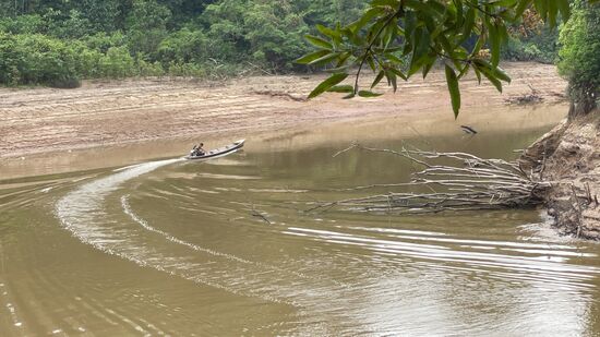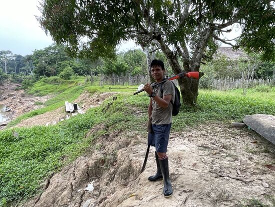 Beim Fluss treffe ich auf einen jungen Mann. Bewaffnet mit einer Machete und einem Gewehr will er heute auf die Jagd gehen. Wohin er denn gehe, und was er schiessen werde, will ich wissen, und merke gleich, wie blöd meine Frage eigentlich ist. "Das was ich finde." ist daher auch seine lapidare Antwort, denn schliesslich geht er nicht zum Spass jagen, sondern, damit die Familie Fleisch hat.