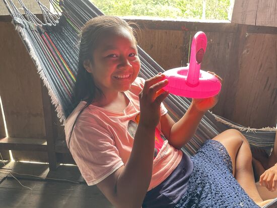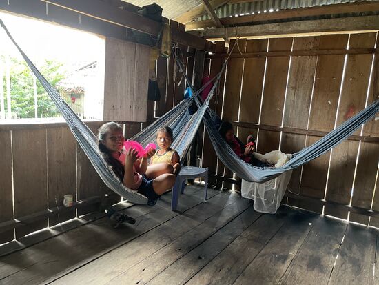 Heute ist auch ihr Mann hier. Juan. Er kam gestern nach Hause, als ich mich schon in meine Hängematte zurück gezogen hatte. Er erzählt mir von sich. Von seinem Leben und wie wunderbar sie es hier hätten. "Wir haben alles was wir brauchen. Essen alles direkt von der Natur. Haben unsere eigene Yucca, unsere Ananasfelder, haben genügend Fisch und manchmal Fleisch aus dem Dschungel. Unser Leben ist perfekt." Das zeigt mir wieder einmal, dass das, was ich sehe und so wie er sein Leben ist, völlig auseinander geht. Armut ist nicht immer das, was wir meinen. Armut oder Reichtum hat etwas mit uns selber zu tun und weniger mit dem was man an materiellen Dingen hat. Dass die Beziehung in der Familie sehr gut ist, merkt man ohne grosse Gesten. Gestern Abend sassen Lyvia und ihre Töchter noch eine Weile zusammen am Tisch im vertrauten Gespräch mit einer Taschenlampe.