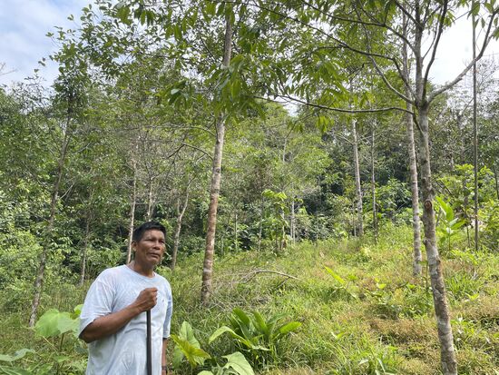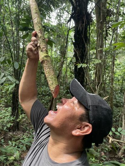 Juan und Liborio zeigen mir immer wieder Pflanzen, die sie für ihr Leben brauchen, Zum Beispiel die Blätter, in denen sie den Fisch einwickeln, bevor sie ihn auf den Grill legen. Oder die Pflanzen, die Wundheilung beschleunigen, das Fieber senken, mit denen ein Aufguss gegen Kopfschmerzen gemacht wird. Vor allem Liborio kennt sich sehr gut damit aus. Seine Mutter hat ihm schon in der Jugend viel beigebracht und als junger Mann wurde er von einer Lehrerin ein paar mal nach Cusco in eine Schule eingeladen, um den jungen Leuten von den Medizinalpflanzen des Waldes zu erzählen.