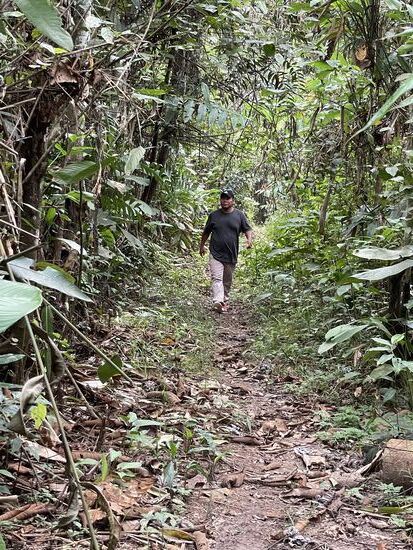 Wir sind schon fast 90 Minuten unterwegs, als ich entscheide, dass wir umkehren. Zwar sind meine Begleiter etwas enttäuscht, vor allem Juan hätte mir gern seinen Acker gezeigt und vielleicht etwas mehr Tiere und nicht nur die paar Affen, die an einem Ort über uns in den Bäumen herumsprangen, aber der Rückweg bestätigt mir, dass es höchste Zeit war, zurück zu gehen.