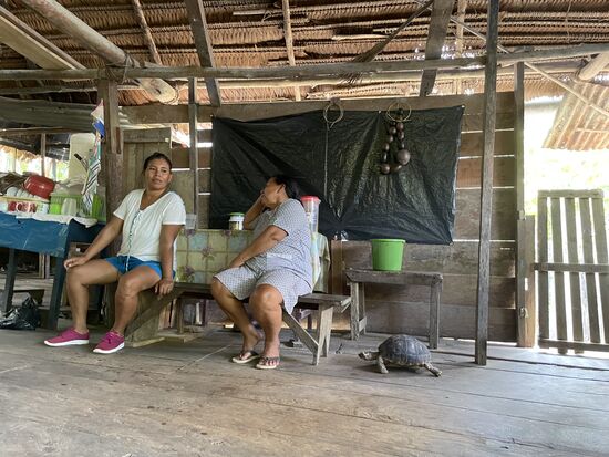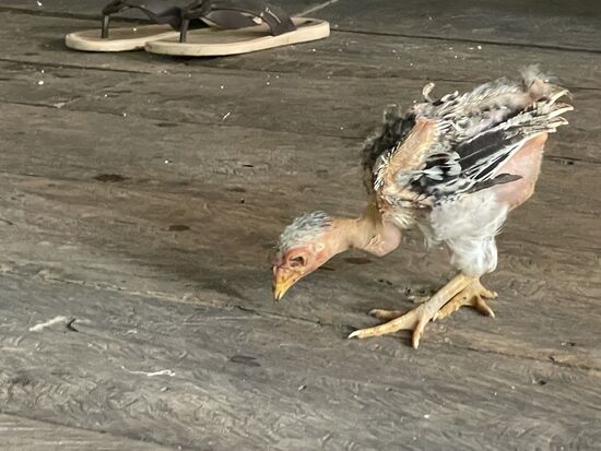 Seine Frau ist daher oft allein zu Hause. Doch sie hat viele Mitbewohner. Allen voran Lulu, die Schildkröte. Diese lebt schon lange im Haus und ist die wichtigste Kameradin geworden. Sie wird sogar mitgenommen, wenn die Tante mal nach Iquitos reist. Dann kommt Lulu in eine grosse Tasche und reist mit. Ausserdem gibt es drei Hunde und ein paar Hühner. Eines hockt in einer Kiste und scheint Eier auszubrüten. Ein anderes, das einen ziemlich gerupften Eindruck macht, stolziert durch die Küche und pickt hier und da ein Korn auf.