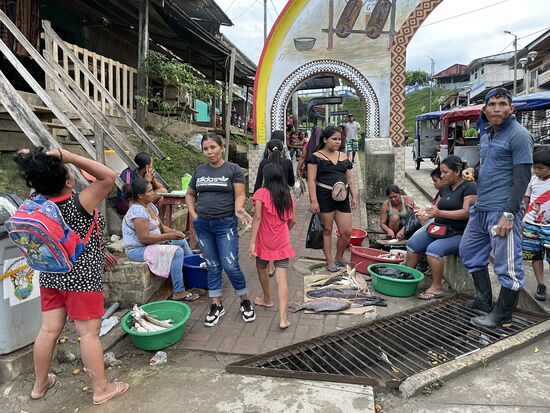 Wir fahren also zurück nach Pebas. Dort sehe ich mich noch ein wenig um, sehe den Fischersfrauen zu, die versuchen ihre kleine Ausbeute zu verkaufen und ihr Angebot irgendwo hinlegen oder durch den Ort tragen.