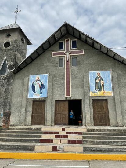 Beim Hauptplatz steht die riesige katholische Kirche. Es gibt auch noch eine Baptistenkirche. Wir fahren durch die grüne Landschaft und der Fahrer macht uns darauf aufmerksam, dass die Covid-Toten hier hinaus gebracht wurden.