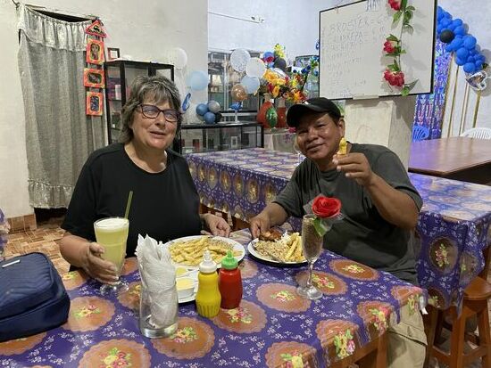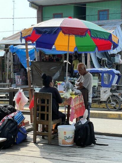 Bei Carlos in der Hafenkneipe ist nichts los, also setze ich mich bei ihm zum Plaudern. Auch er erkennt mich inzwischen, winkt mir jedesmal, wenn ich vorbei gehe. Er lebt schon lange hier in Pebas, ist hier geboren. Eine Zeitlang wohnte er in Iquitos, und ganz kurz sogar in LIma. Doch hier ist sein zu Hause, hier fühlt er sich wohl.