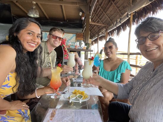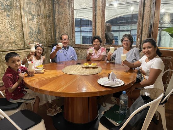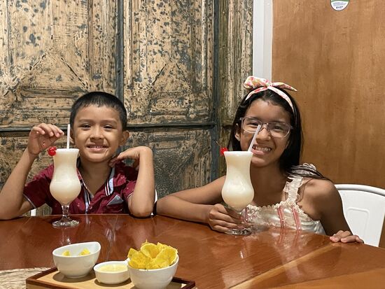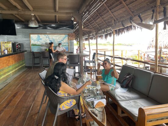 Christoph hat auch die Pandemie hier überlebt. Wobei man tatsächlich von überleben reden muss, denn er hat unter Covid 19 sehr stark gelitten. Während seine Frau ihre ebenfalls erkrankte Mutter ausser Haus pflegen musste, kämpfte er zu Hause gegen die Krankheit. Ausserdem organisierte er im Höhepunkt der Pandemie eine Nachbarshilfe und verteilte Lebenmittelpakete. Gründe genug, mich endlich einmal richtig mit den beiden zu treffen und es nicht nur immer bei einem gelegentlichen Hola zu belassen. Wir hatten jedenfalls zusammen mit Keyla einen sehr schönen Nachmittag im Restaurant Al Frio y al Fuego, das ich zu den besten von Iquitos zähle.