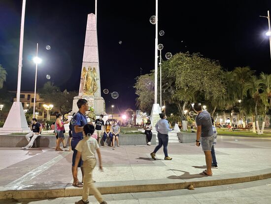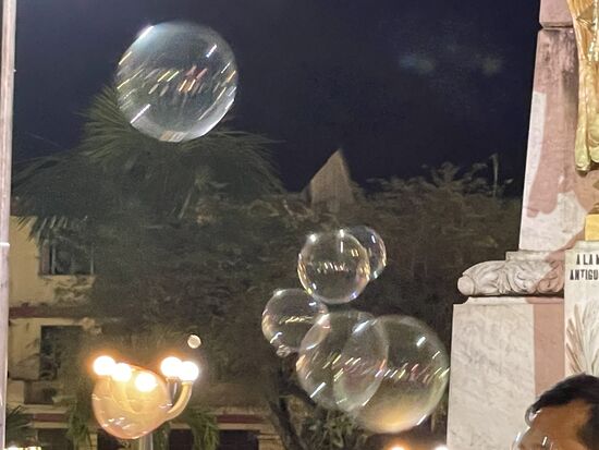 Am Abend spaziere ich noch ein wenig über den Hauptplatz, sehe den Händlern zu, die ihre Spielsachen und Luftballone verkaufen und mit ihren Seifenblasen den Platz verzaubern, dann hole ich Keyla in ihrem Büro ab. Vor ihrer Agentur stehen immer mindetens 10 Personen. Sie ist pausenlos am Arbeiten. Nimmt kleine Beträge entgegen, bezahlt Stromrechnungen, Wohnungsmieten, Wasser oder Versicherungen und gibt kleine Bezüge aus. Dabei steht sie auf ihrem niedrigen Podest, damit sie über den Tresen sieht und desinfiziert sich die Hände wohl 100 mal am Tag.