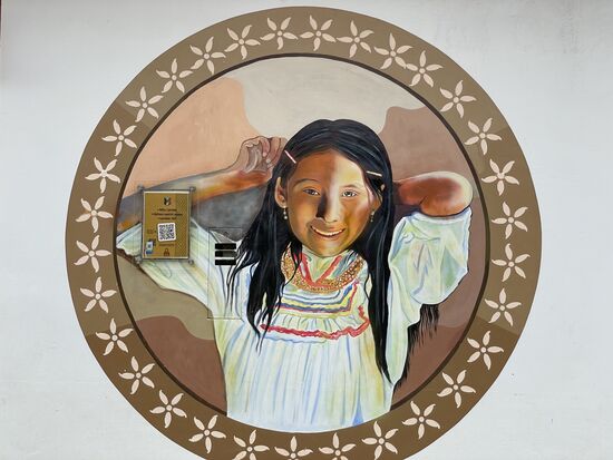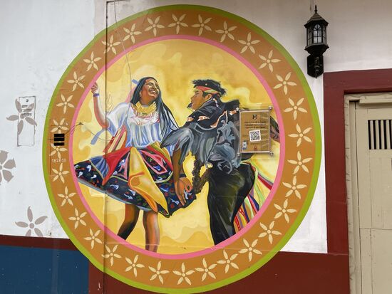 Eine Art Musum gibt es übrigens an den Wänden der Hàuser. Hier sind grosse Gemälde mit den Bräuchen des Ortes und bei jedem Bild gibt es einen QR-Code über den man weitere Informationen aufrufen kann.