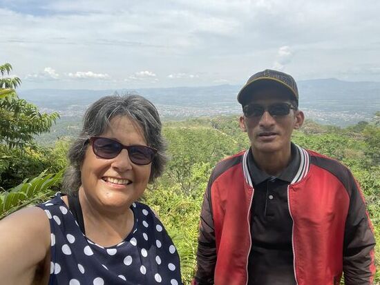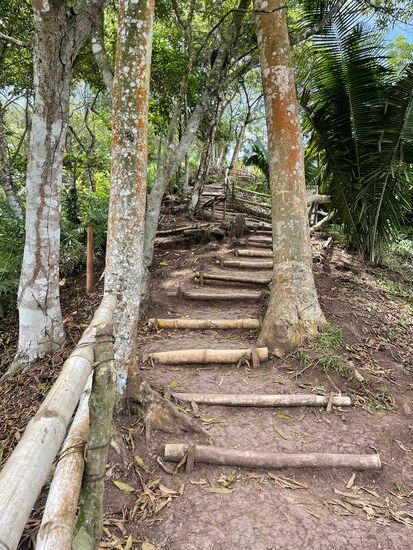 Der Aufstieg bringt mich übrigens ziemlich ausser Atem und ich bin froh, dass auch Cesar kein Bergläufer ist. Er ist ja eigentlich auch immer mit seinem Mototaxi unterwegs. Aber Eiko rennt auf der Treppe auf und ab und mag kaum warten, bis die Erwachsenen auch endlich oben auf dem Aussichtsplatz stehen.