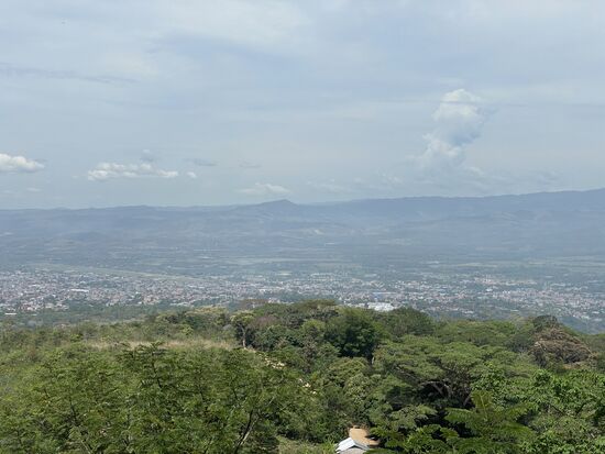 Wir sind auf ca 700 meter und die Aussicht ist tatsächlich fantastisch, auch wenn der Himmel weitgehend von Wolken bedeckt ist. Tarapoto liegt in den Bergen und es ist auch für mich ziemlich ungewohnt, nach der riesigen Ebene am Amazonas jetzt endlich wieder Berge zu sehen. Auch wenn es höchstens 1000-er sind.