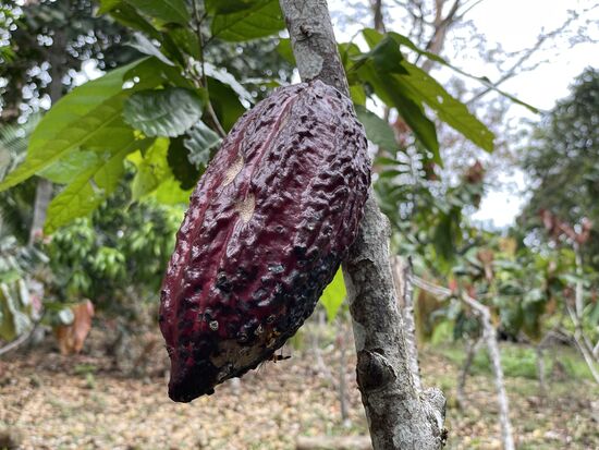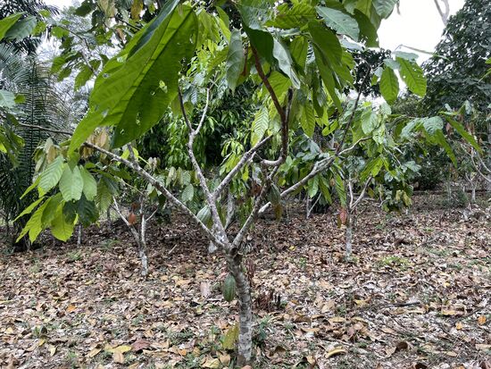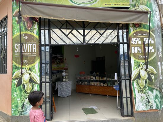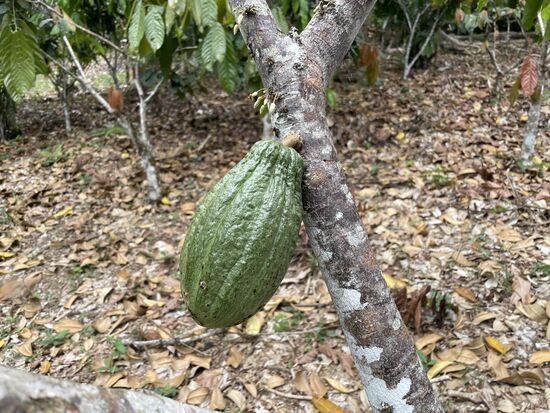 Auf dem Rückweg halten wir bei einer kleinen Kakaoplantage an. Kakao wächst in den Hügeln rund um Tarapoto. Vor allem auf der Strecke von Yurimaguas, wo ich beim Vorbeifahren eine grössere Plantage gesehen hatte. Die Bäume hier sind noch jung und tragen noch nicht viele Früchte. Es ist aber trotzdem faszinierend, diese schweren Kakaofrüchte zu sehen, die direkt aus dem Stamm wachsen. Um zu reifen bleiben sie am Stamm hängen bis sie braun und reif geerntet werden.