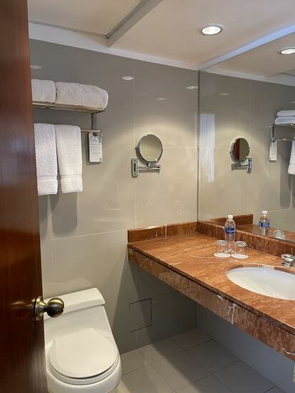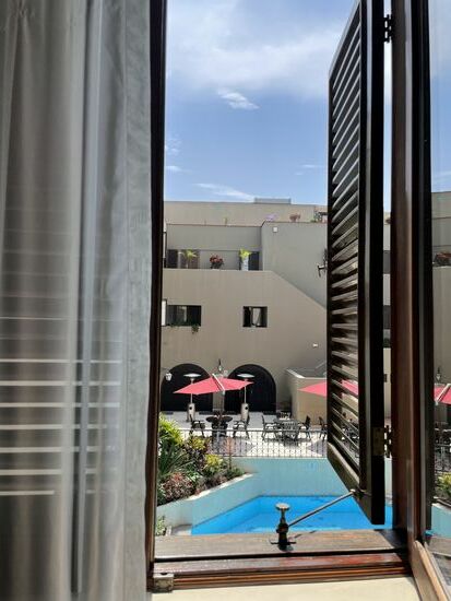 Mein Hotel liegt direkt am Hauptplatz und macht einen sehr guten Eindruck. Leider ist aber mein Zimmer noch nicht bereit, Checkin-Time ist erst um zwei Uhr und es warten bereits andere Gäste, bis die ersten Zimmer bezugsbereit sind.