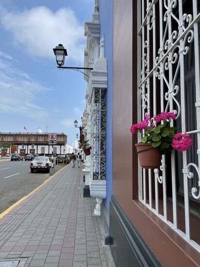 Danach fährt mich Walter zurück ins Hotel. Dabei erzählt er mir, dass er er auch den berühmtesten Autor Perus, den Nobelpreisträger Mario Vargas Llosa jeweils chauffiert, wenn der in Trujillo sei. Zum Beweis zeigt er mir ein Bild mit ihm. Und ausserdem will er auch eines mit mir. Das werden wir morgen machen, dann wenn er mich vom Hotel abholt und zur Busstation bringt. Denn das Ticket für meine morgige Weiterfahrt besorgen wir uns auf dem Rückweg auch noch.