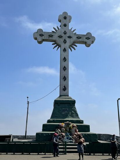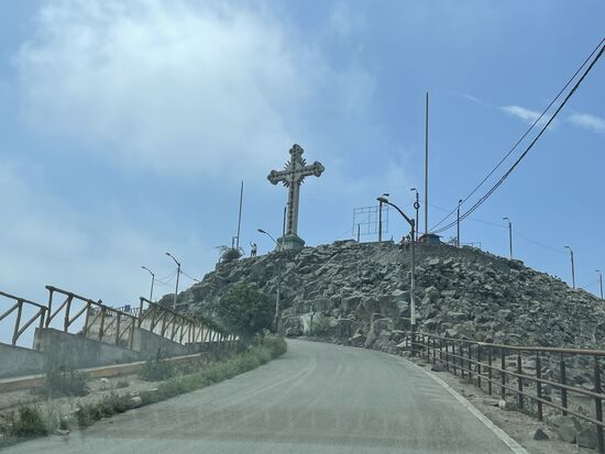 Natürlich haben wir heute einen gemeinsamen Ausflug geplant. Juan hat mir versprochen, dass wir noch einmal auf den Cerro San Cristobal fahren, auf den Aussichtspunkt von Lima mit dem Kreuz. Und weil heute die Sonne die Wolken vertreibt, die sonst immer über Lima hängen, ist es genau der richtige Tag dafür.