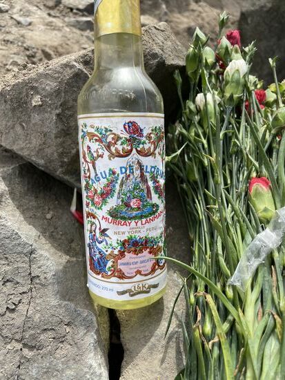 Dann werden zerpflückte Blumenköpfe über die Kohle gestreut. Auch Juan und ich erhalten eine Handvoll rote Nelken, die wir in den Rauch legen. Einer der Männer holt eine kleine Flasche, von der er ein paar Tropfen in unsere Hände gibt. Es ist Agua de Florida, ein Duftwasser, das oft bei Zeremonien verwendet wird. Auch in das Feuer kommen ein paar Tropfen. Es riecht wunderbar frisch (man könnte es mit Kölnisch Wasser vergleichen). Der Anführer spricht jetzt zu Pachamama, er spricht eindringlich, verstehen kann ich ihn nicht, da er meist in Quechua spricht. Es ist nichts aufregendes, alles geht ganz ruhig vor sich. Jetzt holt einer seine Panflöte hervor, bläst hinein. Es sind keine Töne, die er dem Instrument entlockt, es hört sich mehr nach Wind an. Nach dem Wind, der den Rauch verteilt.