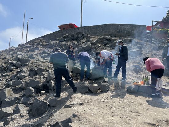 Die Leute kommen aus Puno, das liegt hoch oben auf 4000 m am Titikaka-See. Allerdings leben alle schon seit vielen Jahren hier in Lima, aber ihre Wurzeln haben sie nie vergessen. Regelmässig gehen sie an heilige Orte, an Apu, wie sie in Quechua genannt werden, um ihre Zeremonien zu machen und um der Pachamama Opfer zu bringen.