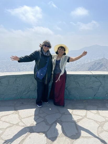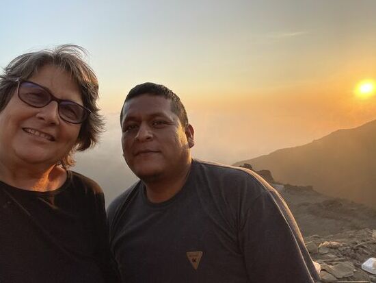 Natürlich darf ich sie fotografieren, aber sie besteht auf einer gemeinsamen Foto, auch mit ihrem Handy. Wir wollen diesen Moment festhalten. Pilar auf dem Cerro San Cristobal.