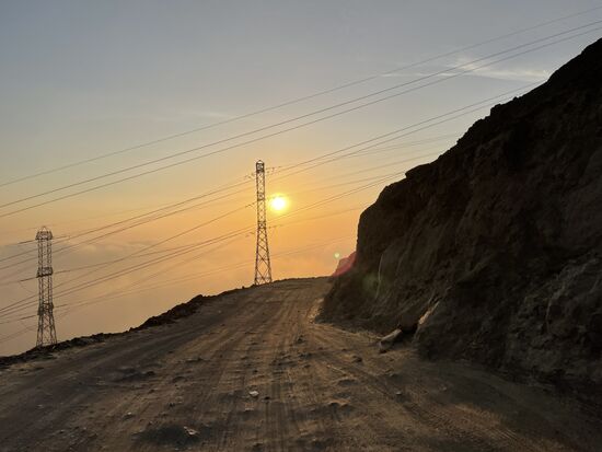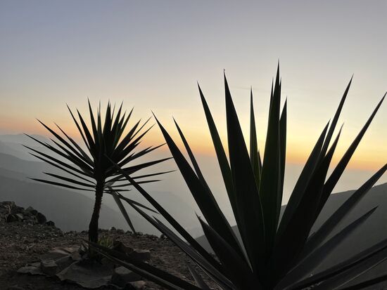 Die Strasse da oben ist nur noch eine Schotterstrasse mit Steinen und Abbrüchen auf der einen und steilen Hängen auf der anderen Seite. Doch wir steigen wieder hinauf. Bis fast auf 800 Meter steigen wir, als uns hinter einer Kurve die glühende Sonne überrascht. Juan hat es geschafft. Wir halten an und sehen der Sonne zu, wie sie hinter dem Dunst rotglühend verschwindet. Und ausserdem sehen wir den anderen Autos und LIeferwagen zu, wie sie sich auf der steilen Schotterpiste abmühen. Ich mache ein paar Videos und merke, dass die aussehen wir die gefährlichsten Strassen der Welt, von denen man im Youtube Videos findet. Doch so schlimm ist es nicht, immerhin ist die Strasse an den meisten Orten so breit, dass sich zwei Busse kreuzen können...