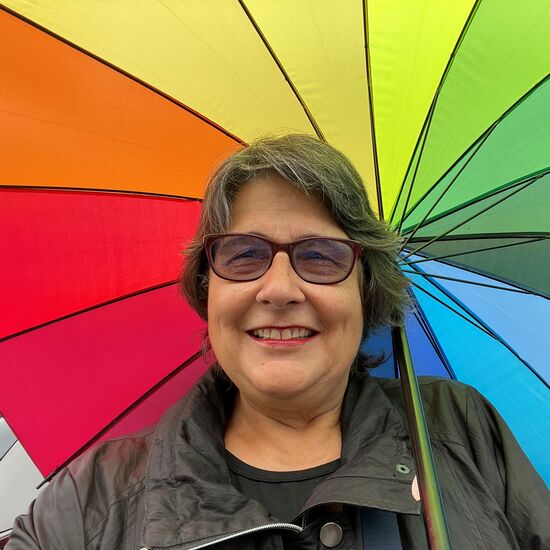 Doch auch da kam mir Juan zur HIlfe. Er suchte im Internet farbige Schirme und zeigte mir seine Ergebnisse. Und dann fuhren wir eines Nachmittags nach La Punta - das war der Tag, als wir auch den Ausflug auf die Insel abklärten. Dort hatte er mit einer Verkäuferin abgemacht, die mit einem Regenbogenschirm daher kam.