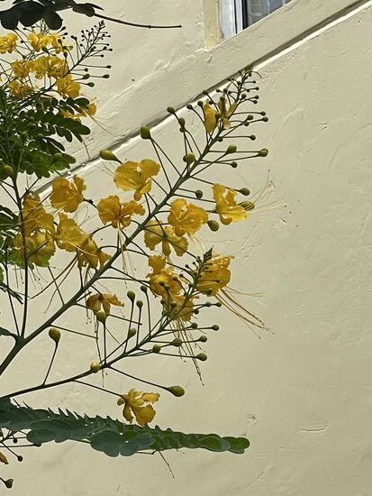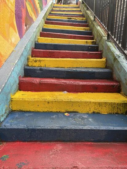 Ich merke die Steigung, komme aber ganz gut voran. Beim grossen Tulpenbaum gibt es eine lange blaue Treppe, ob ich tatsächlich da hinauf muss? Mein Plan auf dem Handy zeigt einen anderen Weg, doch auch der geht jetzt steil bergauf. Aber immerhin wird es farbiger. Die Strasse schmaler und die Mauern und Treppen sind bemalt. Ich bin froh, dass ich allein unterwegs bin, ich brauche immer wieder einen Halt, mit einer Gruppe käme ich zusehr in Stress.