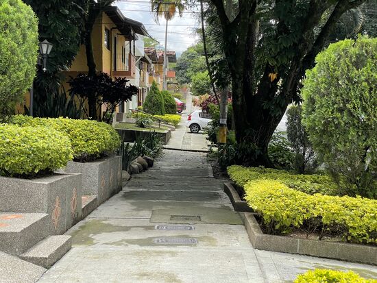 Und wieder gibt es kleine gepflegte Gärten mit zurechtgestutzten Büschen und dekorativen Mäuerchen. Medellin überrascht.