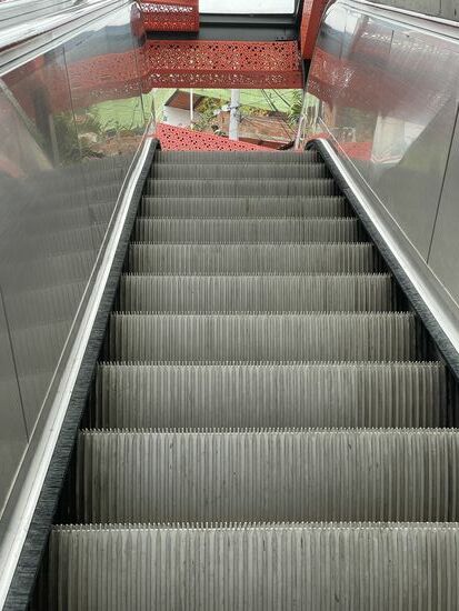 Alles ist farbig hier, die Wände, die Restaurants, die Auslagen in den Läden, die Treppen und ich versuche möglichst viele schöne Bilder zu sammeln. Zwar spuckt die Rolltreppe immer neue Menschen aus, doch es ist noch immer sehr angenehm, überhaupt nicht überfüllt. Bestimmt sah das vor der Pandemie hier komplett anders aus.