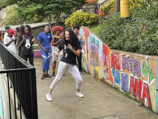Da oben gibt es viele kleine Läden, die Handarbeiten verkaufen, Lautsprecherboxen, aus denen überlaut Musik ertönt, kleine Bars wo Bier und frische Fruchtsäfte serviert werden. Ich schlendere entspannt den Ständen entlang, setze mich beim Breaktänzer einen Moment hin und warte auf seinen Auftritt. Der ist aber im Moment grad beschäftigt, einem kleinen Jungen ein paar Schritte zu erklären.