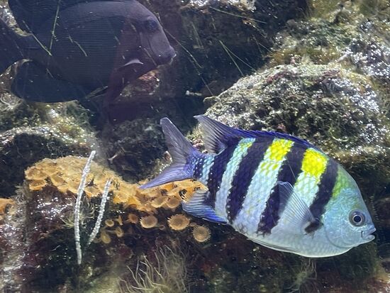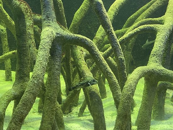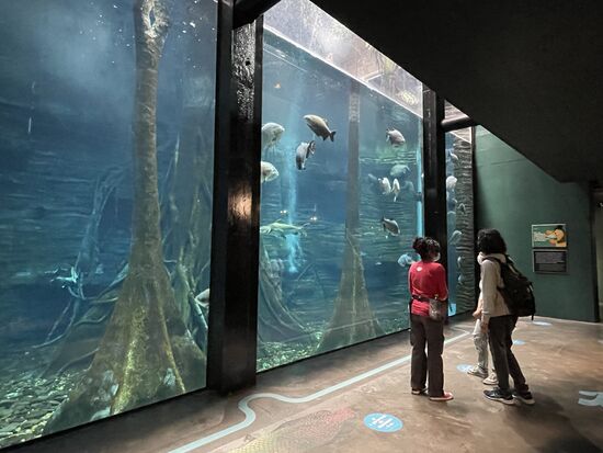 Jetzt, wo ich die Bilder zusammenstelle, kann ich kaum verstehen, warum ich kein Video aufgenommen habe. Ich war wohl einfach zu sehr von den Fischen fasziniert, musste sie vor allem mit den Augen aufnehmen. Was absolut für diesen wunderbaren Ort spricht. Es gibt auf zwei Stockwerken verschiedene Aquarien und alle sind grösser, als ich sie an anderen Orten gesehen habe. Die Unterwasserwelt wird übrigens über dem Wasserspiegel mit einem üppigen Regenwald-Ambiente ergänzt.