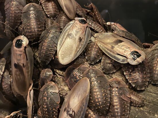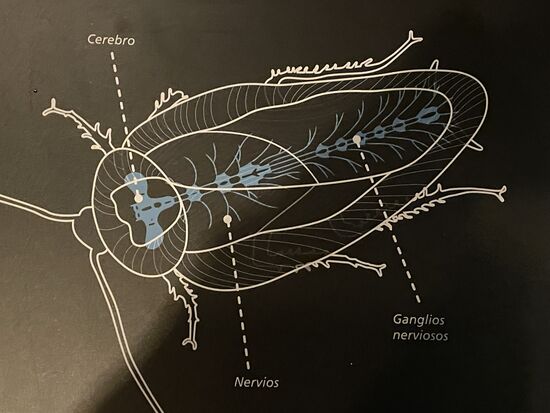 In Schaukästen gibt es verschiedene Tiere und es wird aufgezeigt, wie sich auf ihre besonderen Eigenschaften spzialisiert haben. Zum Beispiel kleine Nager, die vorwiegend unter der Erde in der Dunkelheit leben. Oder die Küchenschaben, Cucaracha mit ihrem Nervensystem. By the way, es handelt sich um die grössten Cucarachas, sie sind bis 8 cm lang und können bis 2 Jahre alt werden. Und weil wir grad dabei sind noch etwas mehr aus dem Leben der Küchenschaben. Im Gegensatz zu den meisten Insekten legen sie keine Eier, sondern gebären lebend.