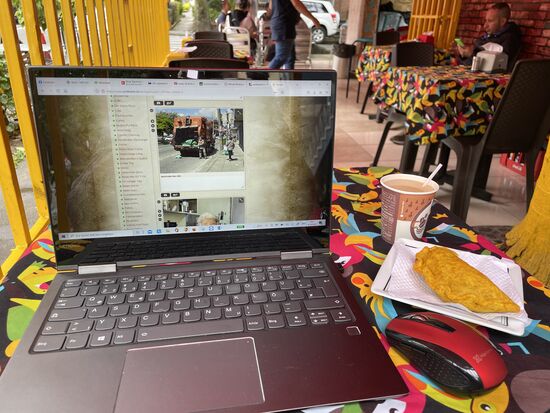 Zum Frühstück gehe ich über die Strasse, ins Restaurant, wo ich heute morgen unbedingt noch das Kapitel von der MetroCable schreiben will.