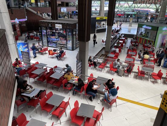 Es ist ein riesiges Busterminal. Ein eigentliches Shopping-Center mit unzähligen Shops und Restaurants und einer unüberblickbaren Reihe von Schaltern für Busreisen im ganzen Land. Ich muss zweimal nachfragen, bis ich den richtigen Schalter finde, aber dann geht es ganz schnell. Der nächste Bus fährt in 10 Minuten. Abfahrt an der Rampe 13. Glück gehabt.