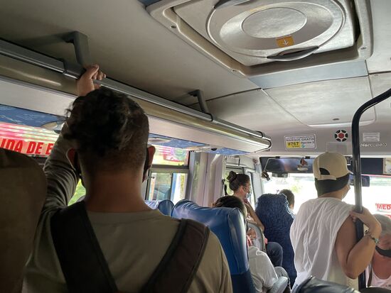 Der kleine Bus hat 20 Plätze und ist ausgebucht. Wir sind kaum losgefahren, da hält der Chauffeur auch schon wieder an und lässt einen jungen Mann einsteigen. Der schaltet seine Musikbox ein und beginnt einen Rap. Ich verstehe zwar kaum etwas drücke ihm aber am Schluss die Münzen, die ich immer im Hosensack sammle in die Hand. Kaum ist er ausgestiegen, steigt auch schon wieder ein Mann zu. Er erzählt von seinem harten Leben mit der Familie und den Kindern und drückt jedem eine Schokolade in die Hand. Dann sammelt er entweder 2000 Pesos oder die Schokolade wieder ein und steigt bei nächster Gelegenheit aus. Ich stelle mich jetzt auf eine ungestörte Fahrt ein, als schon wieder jemand einsteigt, Musik spielt und dazu singt.