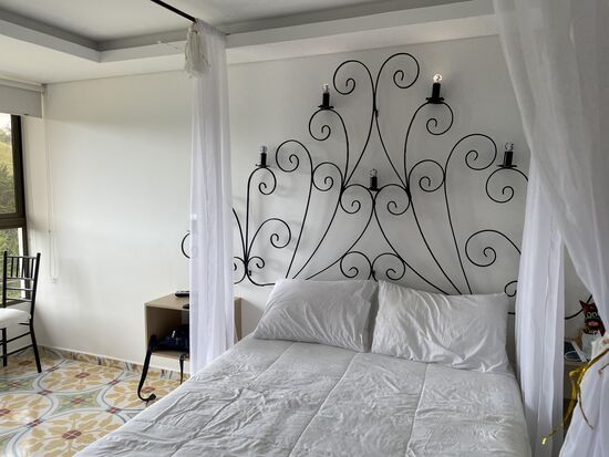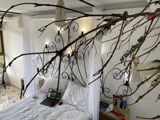 Weil ich glaube, dass ich für meinen WhatsApp-Status meinen Ortswechsel markieren sollte, frage ich nach einem Schirm. Der durchsichtige Schirm scheint mir passend für meinen kurzen Abstecher und so habe ich auch diesen Programmpunkt erledigt. Weil mein Zimmer trotz der vielen Gästen noch nicht ganz bereit ist, komme ich mit der Frau ins Gespräch, die im Foyer sitzt. Sie ist nicht die Besitzerin, wie ich angenommen habe, sondern eine gute Freundin der Besitzer. Sie will wissen, was ich in Kolumbien noch besuchen will und gibt mir einige Tipps für meine weitere Reise. Einige kannte ich schon, ein paar kann sie mir bestätigen. Mein Aufenthalt in Kolumbien wird also immer konkreter und spannender.