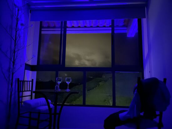 Die Nacht war lang, an Tiefschlaf nicht zu denken. Vielleicht war aber auch die schummerige Belechtung schuld, die blauen Lichtlein im Garten wurden nicht ausgeschalten und gaben einen blauen Lichtschein in mein Zimmer ab. Ja, ich hätte die Storen herunterlassen können, doch ich wollte den Morgen bewusst erleben.