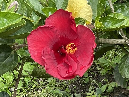 Ich lasse mir an der Rezeption ein Mototaxi bestellen und sehe mich noch ein wenig im Garten um. Gelb und dunkelrosa Hibiskussträuchen, Orangenbäume und sogar eine Guave kann ich entdecken.