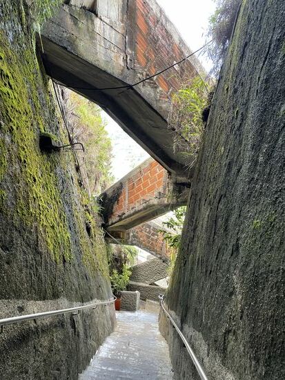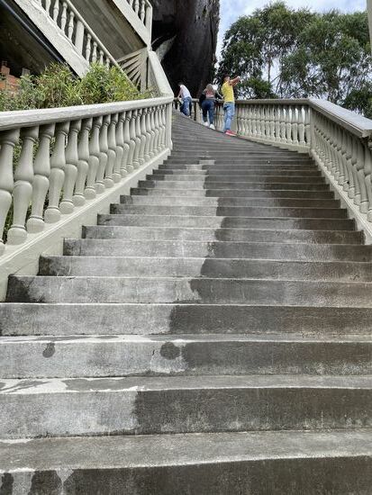 Meine Euphorie hat nur kurz gedauert. Aber immerhin bringt mich mein Taxifahrer 100 meter höher. Zum Beginn der Treppe. Das ist schon wieder 100 näher zum Ziel. Es sind also nur noch gut 100 meter zu überwinden. In Medellin habe ich das auch geschafft. Aber es sind 700 Stufen, meldet sich da mein unsportliches ich. Was solls, auf Stufen kann man sich setzen, man kann überall die Aussicht geniessen, es gibt kein Rennen. Wer oben ankommt gewinnt, nicht wer zuerst da war.