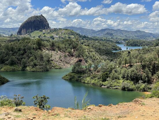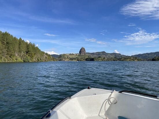 Bald sieht man auch den Penol wieder. Hier vom Wasser aus sieht er noch viel eindrücklicher aus. Dieser riesige Stein, der da mitten in der Gegeng steht.