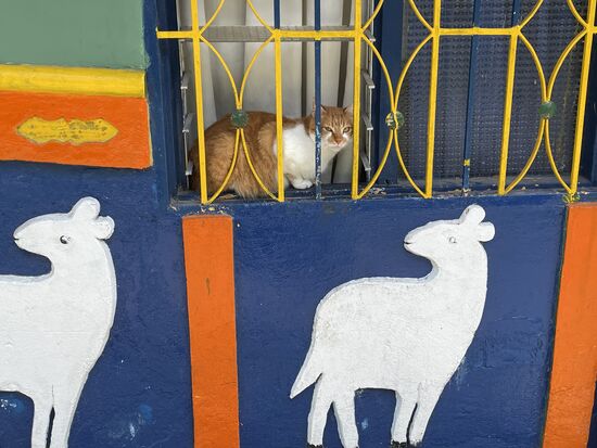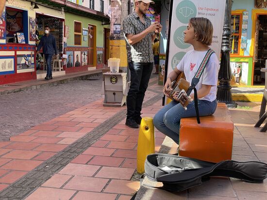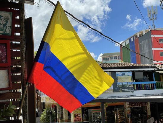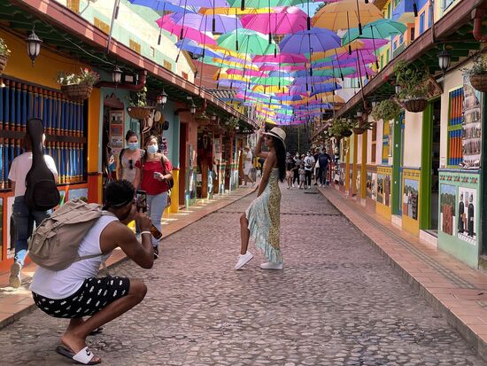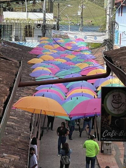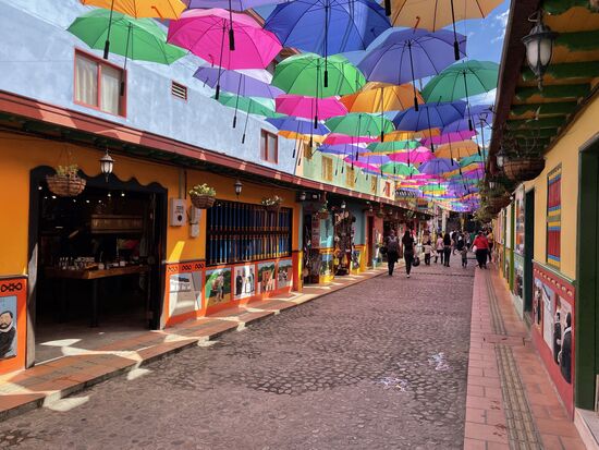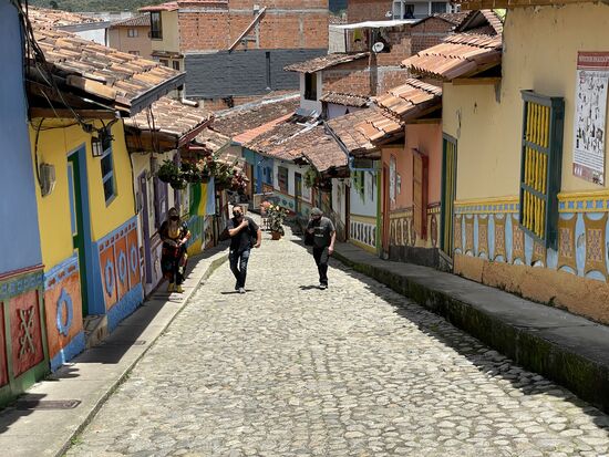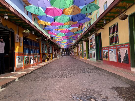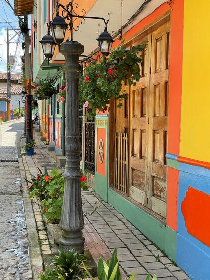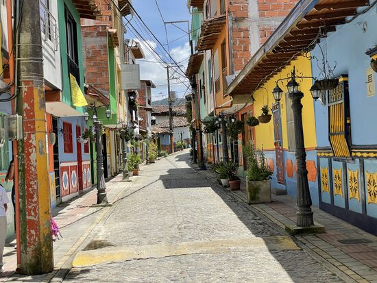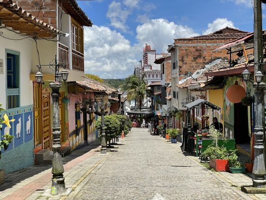 Die Häuser an dieser Strasse sind alles Läden mit Souvenirs. Mit vielen Handarbeiten, aus den verschiedensten Materialien. Es ist nur nichts los zur Zeit. Bestimmt ist hier aber zu normalen nicht-pandemie-Zeiten die Strasse voll und an so lockere Fotoaufnahmen ist nicht zu denken. Natürlich kann ich nicht alle Menschen beurteilen, aber ich glaube, es sind tatsächlich vor allem Kolumbianer unterwegs. Jedenfalls hört man nur spanisch, kein englisch.Ddeutsch habe ich auf meiner ganzen Reise bisher noch nie gehört. Ich fühle mich mal wieder sehr privilegiert, dass ich zu dieser ruhigen Zeit unterwegs sein darf.