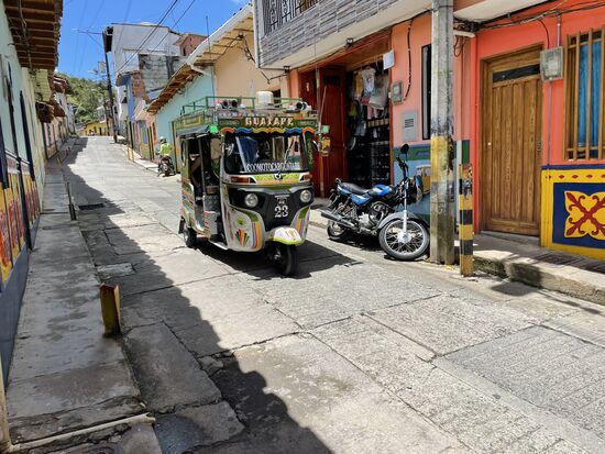 Ich lasse mir derweil ein Mototaxi rufen und fahre nach Guatape, dem kleinen Ort in der Nähe. Es soll ein farbiger Touristenort sein, soviel weiss ich, habe auch schon ein paar Bilder gesehen.