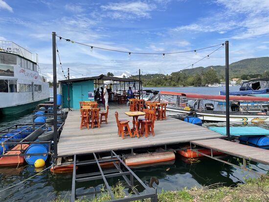 Auf halbem Wege stehen da ein paar Boote. Ich hatte schon am ersten Tag gefragt, was es damit auf sich hätte. Es war ein Projekt, man wollte ein exklusives Restaurant mit kleinen schwimmenden Tischen eröffnen. Die Pandemie hat diesem Vorhaben dann wohl den Schnauf genommen.