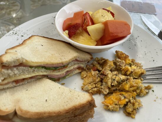 Als wieder zurück zur Rezeption komme, ist er schon wieder hier. "Wie wars, will ich wissen?". "Oh, ich war noch nicht oben, gehe erst jetzt." Hab ich mir doch gedacht, dass er sein Frühstück erst am Nachmittag essen wird.