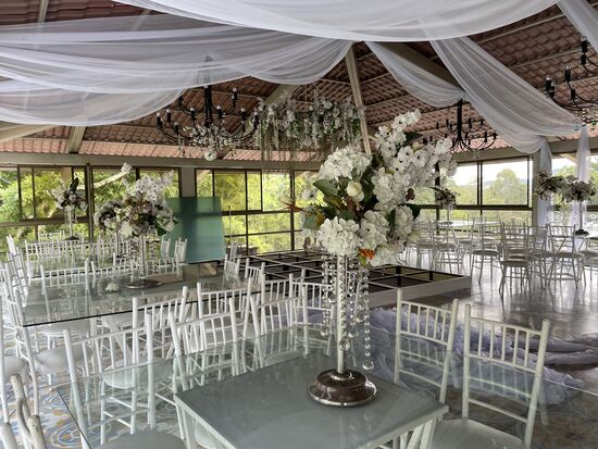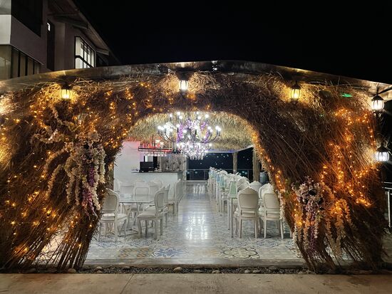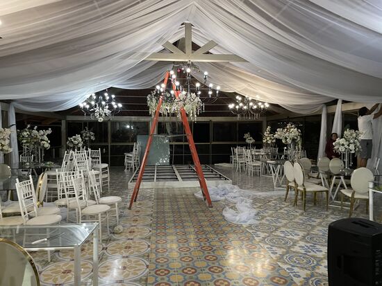 Im Terrassensaal ist man immer noch am Dekorieren. Der junge Mann, der mich an der Rezeption empfangen hatte, heisst Juancho. Er ist jeweils nur am Wochenende hier, denn eigentlich ist er Grafiker und Designer. Und er ist für das Design des Hotels zuständig. Also für all die farbigen kitschigen Lämpchen, die dauernd die Farbe wechseln. Aber auch für die schönen Blumenarrangements, die pompösen Sessel im Foyer und die Wandmalereien. Alles von ihm. Jetzt ist er dabei, den grossen Terrassensaal zu dekorieren, denn am Sonntag wird die Besitzerin hier Hochzeit feiern. Ich bin gespannt, wie der Saal am Schluss aussehen wird, kann aber kaum das Endergebnis sehen, da ich morgen zurück nach Medellin reise.