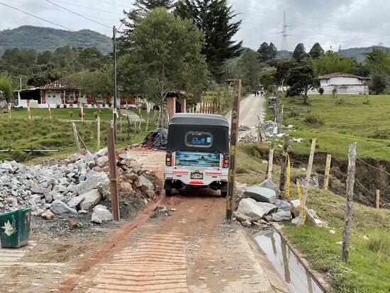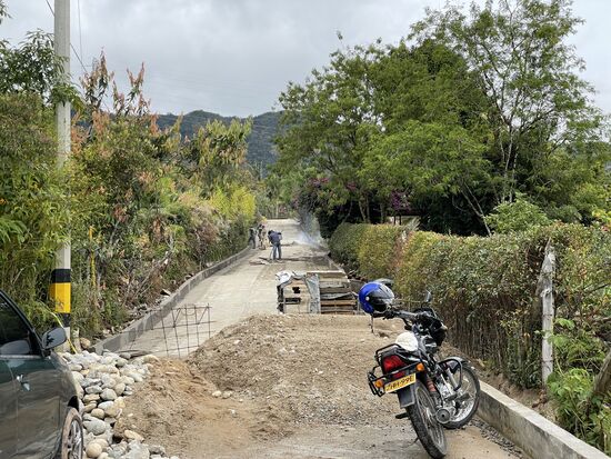 Die Strasse zum Benediktinerkloster, das hier irgendwo in der Einsamkeit liegt, ist leider durch eine Baustelle gesperrt. Die nächste Baustelle aber schaffen wir. Fernando lenkt sein Mototaxi einach zwischen den Erdhaufen hindurch und schon haben wir wieder freie Fahrt.